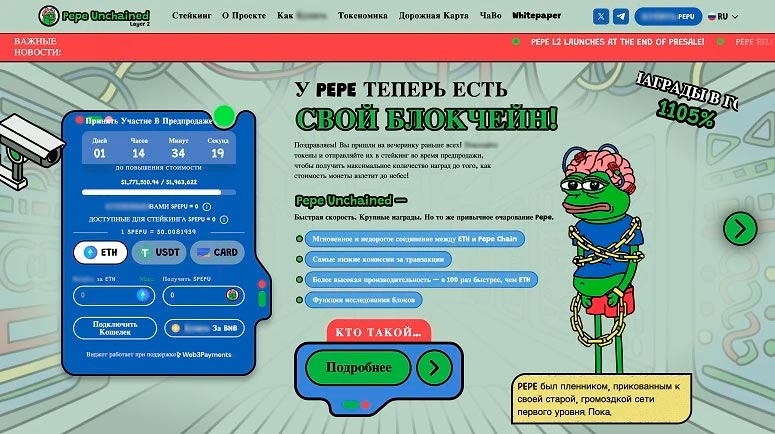- Pepe Unchained — первый мемный токен из серии Пепе, получивший свой блокчейн.