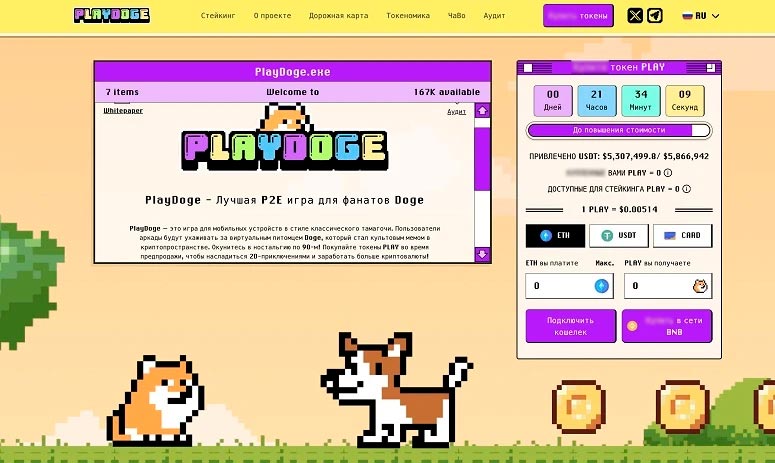 - PlayDoge — мобильная аркада в стиле тамагочи с механикой «играй, чтобы заработать» (P2E).