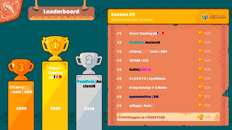 По условиям 20 сезона, дополнительные AXS получат 300 тыс. игроков с самыми высокими результатами. За место в диапазоне 150-300 тыс. предусмотрен денежный приз, награда составит около $18 в фиатном эквиваленте.