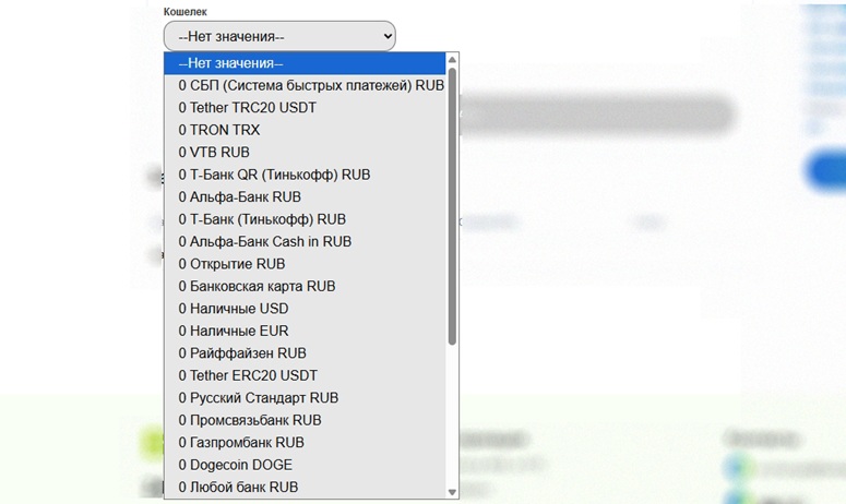 Сервис работает с разными банками и платежными системами. Список вариантов отображается после выбора направления обмена. Пользователям доступны платежи через СберБанк, Т-Банк, Альфа-Банк, Райффайзен Банк, OZON Банк, Промсвязьбанк, Газпромбанк, СБП, банковские карты, Alipay, WeChat, ATM NFC, Revolut, Wise и т.д.