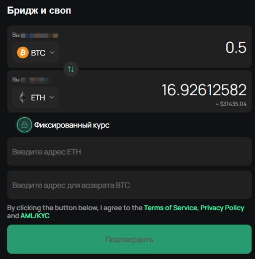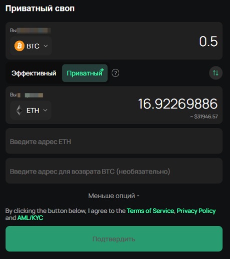 Для максимальной конфиденциальности можно выбрать режим приватной сделки. Инструкция для обзора обменника: