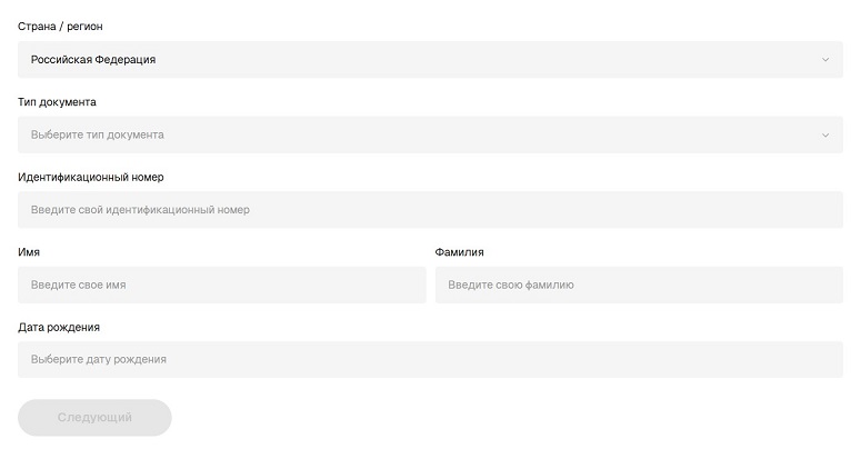 Базовая проверка не требует предоставления документов. Достаточно указать личные данные: гражданство, ФИО и дату рождения. Основная верификация увеличивает потенциальную сумму вывода до 200 BTC, расширенная — до 3000 биткоинов.