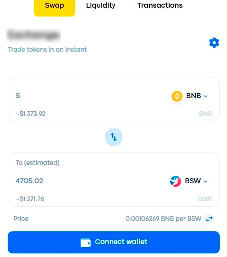 Biswap — токен стандарта BEP-20, работает на блокчейне Binance Smart Chain. Осенью 2022 года пропускная способность сети составляет 250-300 транзакций в секунду. Пользователи платят небольшую комиссию за газ — 5 Gwei ($0,000012).