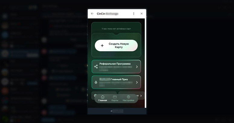 Оформление доступно через Телеграм-бота. Включать его рекомендуется только по ссылке с официального сайта CinCin. Непосредственно в браузере выпуск не производится, платежный инструмент привязывается к аккаунту держателя в Telegram. Общий порядок действий следующий: