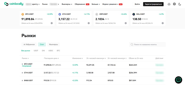 - Спотовый рынок. Пользователи могут быстро покупать и продавать криптовалюты, чтобы зарабатывать на колебаниях курсов.