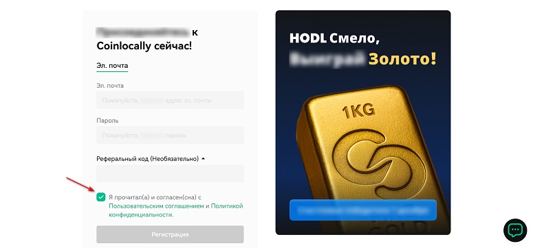 - Изучить пользовательское соглашение и политику конфиденциальности, принять их, отметив соответствующий пункт галочкой.