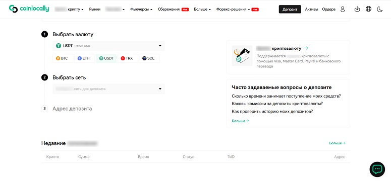 На криптобиржу Coinlocally можно внести большинство монет, которые доступны для торговли. Алгоритм действий следующий: