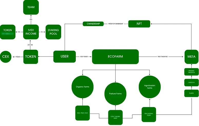 Для расчетов внутри экосистемы создан нативный токен IVEX Financial. Криптовалютой можно оплатить покупку земли, инвентаря, услуги доверительного управления бизнесом.