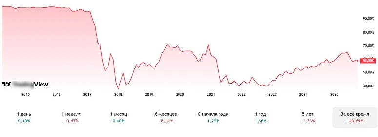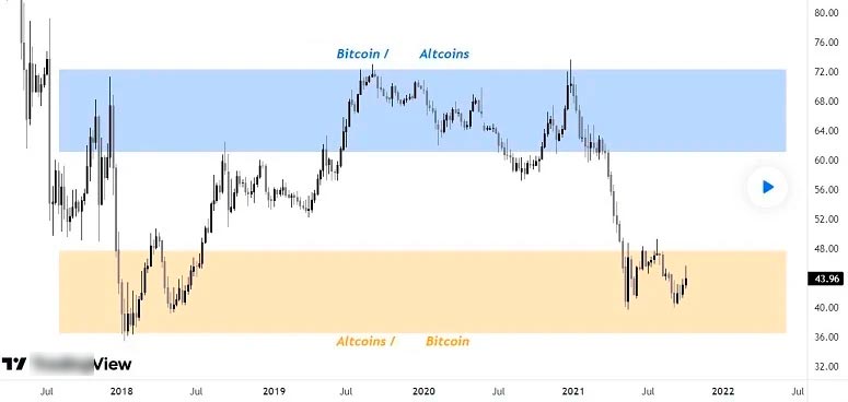Онлайн-график доминации биткоина над альткоинами на сегодня