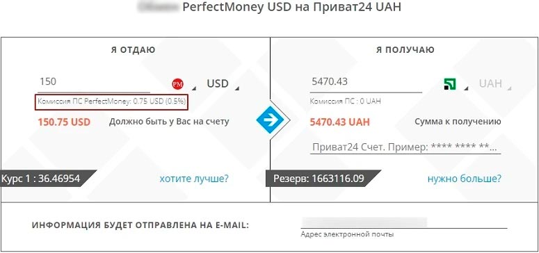 Платформа предлагает 22 направления. Пользователи могут конвертировать фиат и криптовалюту. Алгоритм обмена электронных денег: