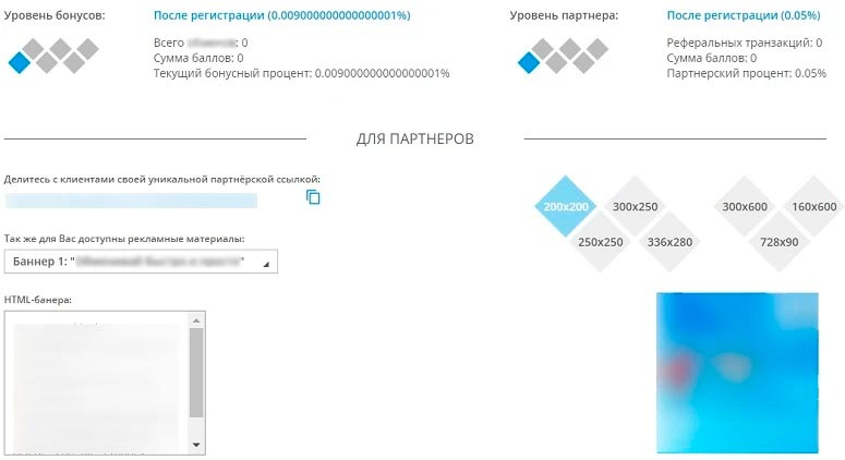 Также клиенты зарабатывают на привлечении новых пользователей. Реферальная ссылка находится в разделе «Мой профиль» личного кабинета. Там же можно найти рекламные баннеры для размещения на своих ресурсах.
