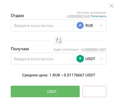 На бирже реализована функция обмена национальных финансовых активов (рублей, тенге) на цифровые монеты. В главном меню сайта есть раздел «Быстрые торги». При переходе на экране появляется большой список поддерживаемых активов, которые можно купить. Для проведения операции необходимо указать сумму и направление обмена (валюты/крипты).