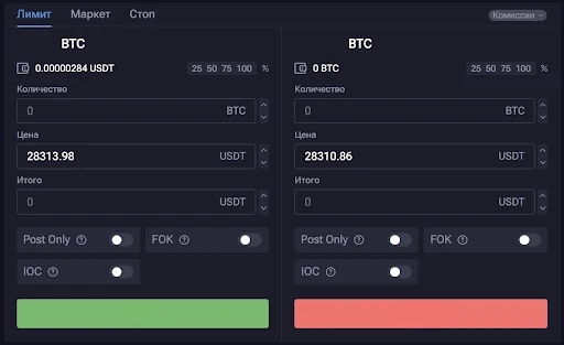 После выбора цены покупки или продажи монет нужно оформить заявку. Есть 3 типа ордеров, каждый из которых требует указания определенных параметров. Как только все необходимые поля будут заполнены, остается подтвердить оформление заказа, и он отправится в стакан (так называют книгу заявок).