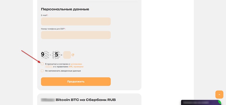 - Решить капчу, согласиться с условиями платформы и правилами AML-проверки. Для этого необходимо отметить соответствующий пункт галочкой. Также можно выбрать опцию «Не запоминать введенные данные».