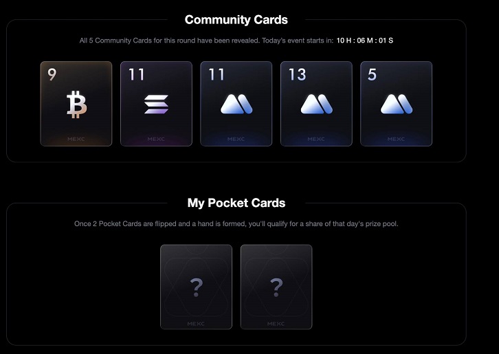 - Каждый день открываются 5 карт сообщества. Они объединится со 2-мя карманными картами участника, чтобы сформировать комбинацию из 5 лучших.