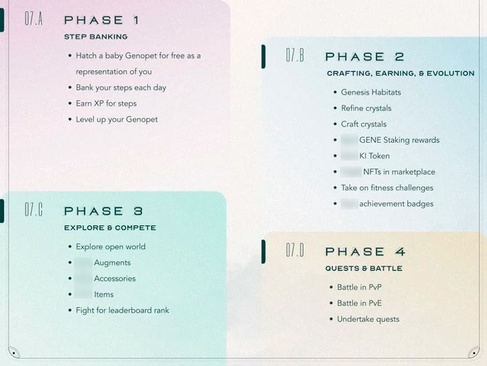 Также разработчики криптовалюты GENE опубликовали текущую (на 7 июня 2022 года) дорожную карту. Однако в ней не указаны даты реализации обновлений. Информация о прошедших и будущих улучшениях игры представлена в таблице.