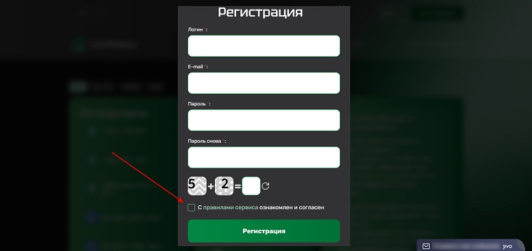 - Принять правила сервиса. Пользователь должен отметить соответствующий пункт галочкой, а также решить капчу.