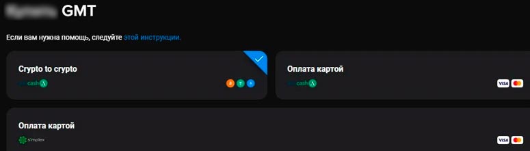 В обзоре криптомонеты GMT стоит отметить возможность покупки за фиат (банковской картой или переводом). Она также торгуется на регулируемых биржах (Bittrex, EXMO, HitBTC) за USDT и DEX (SushiSwap, Uniswap v3, PancakeSwap v2) за WETH, WBNB.