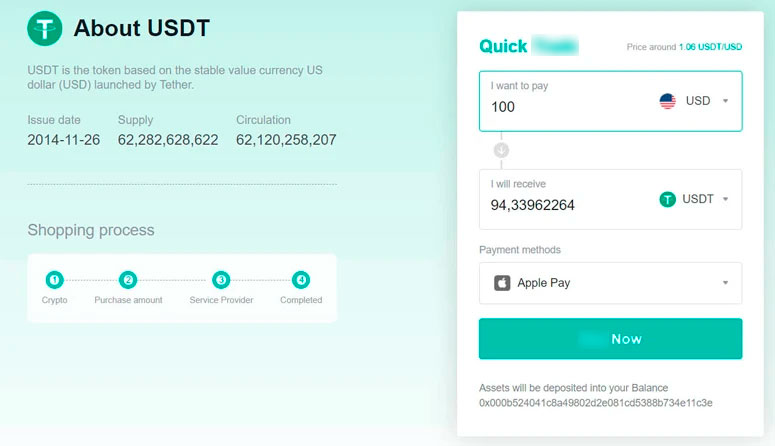 Во вкладке OTC главного меню можно выбрать пункт Quick Trade, чтобы открылся интерфейс быстрого обмена монет. Это вид внебиржевой торговли, позволяющий моментально проводить необходимые операции с активами. Здесь на выбор доступны 3 фиатные валюты (USD, HKD, CAD) и коины (BTC, ETH, USDT). Для оплаты этих операций используются кредитные карты и Apple Pay.
