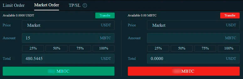 Если пользователь создает рыночный ордер (Market), он исполняется моментально. В случае с Limit или TP/SL заявка остается висеть до тех пор, пока не будут выполнены соответствующие ее требованиям условия (например, монета должна подорожать или подешеветь до установленных значений).