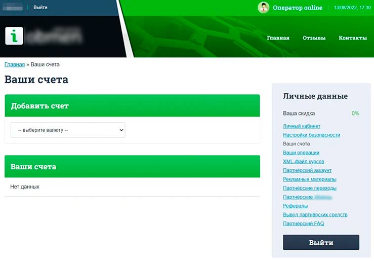 На официальном сайте I-Obmen отсутствует информация о размерах сборов. По факту оплата услуг входит в курсовую стоимость активов и вычитается во время проведения транзакции от объема заявки. Какой процент берется за перевод, не разглашается.