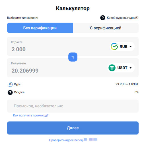 - Ввести сумму сделки, сверить предложенный обменный курс и количество монет к получению.