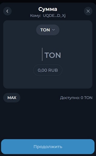 - В разделе «Пополнение» скопировать адрес Toncoin.