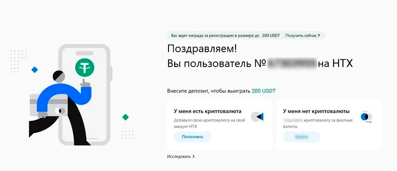 После первого входа в аккаунт биржа предложит пополнить баланс криптовалютой или купить актив за фиатные деньги. После этого можно начать торговать на HTX. Но не стоит торопиться.