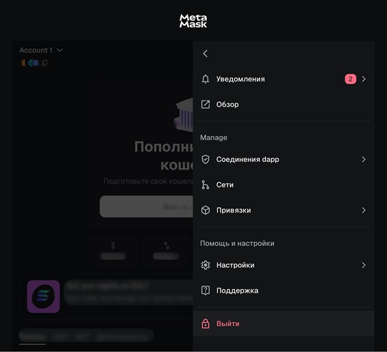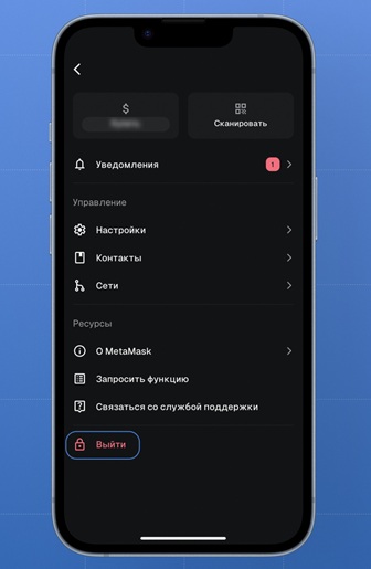 Как выйти из кошелька МетаМаск на телефоне