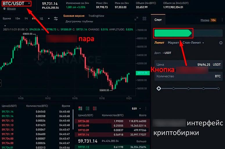 - Выбрать нужную криптовалютную пару в торговом интерфейсе площадки.