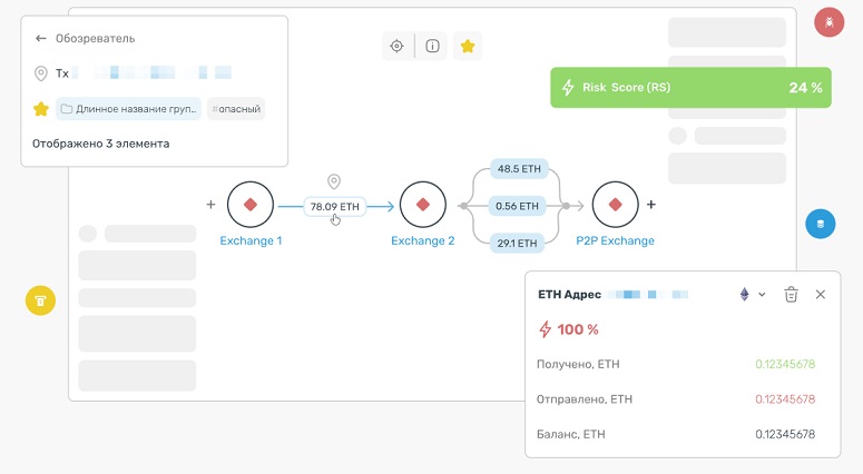 Это аналитический сервис, который помогает компаниям и пользователям криптовалют соблюдать международные стандарты борьбы с отмыванием денег, избегая сделок с «грязной» криптовалютой. Возможности КоинКит включают в себя AML-проверку кошельков и отдельных транзакций, глубокий анализ и выявление связей с другими участниками рынка. Пользователи получают подробные отчеты с распределением переводов по категориям источников и максимально точной оценкой риска.