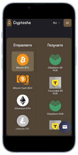 Если нужно получить наличные, можно запросить их выдачу при помощи QR-кода. Платформа работает со СберБанком и Т-Банком. В таком случае пользователь должен отправить криптовалюту обменнику, подойти к ближайшему банкомату одной из перечисленных организаций и запросить код для перевода. QR-код нужно сфотографировать. Затем его надо отправить оператору. После этого устройство выдаст наличные.