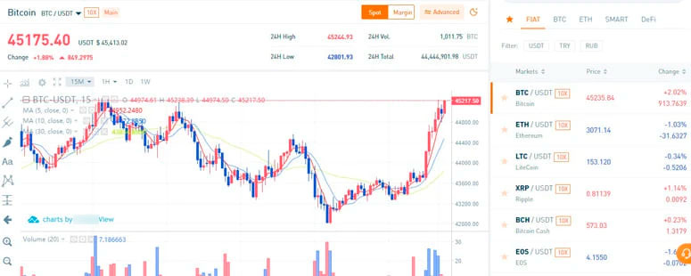 - Binance. Лидирует по количеству торговых пар и среднесуточным объемам сделок.