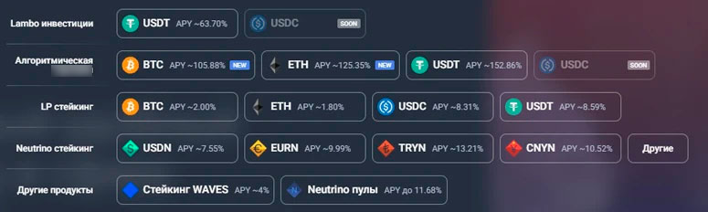 | Криптовалюты платформ | Binance Coin, Waves |