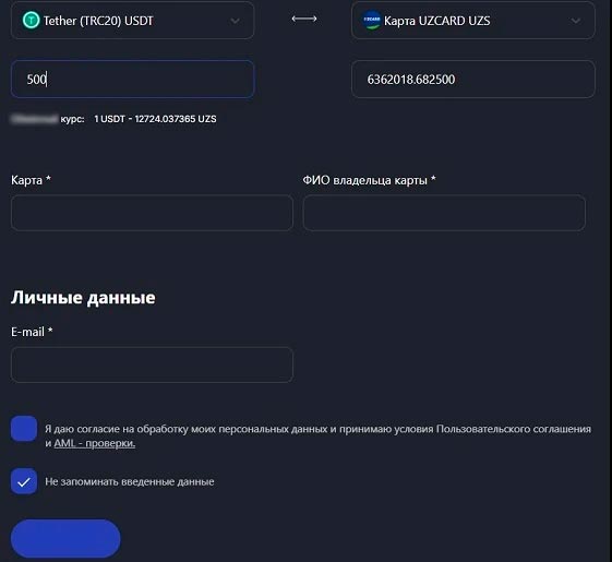 На главной странице пользователям предлагают заполнить заявку на обмен. Инструкция, как продать USDT за UZS:
