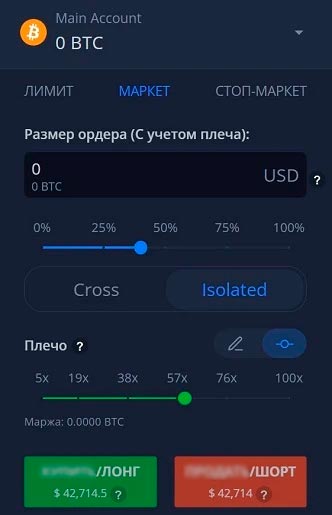 - Заполнить и разместить ордер. Можно указать его тип, а также размер плеча и маржу.