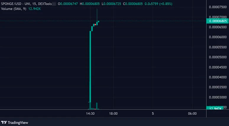 Токен SpongeBob ($SPONGE), который был выпущен в 10 утра (EST) в четверг, 4 мая 2023 года, быстро набрал популярность. Благодаря мгновенному вниманию со стороны ведущих влиятельных альфа-экспертов токен получил первоначальный 150%-ный рост при запуске.