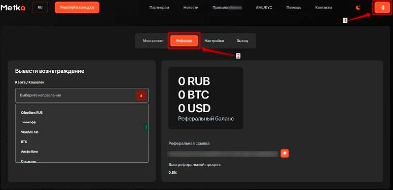 Пользователи криптовалютного обменника могут получать пассивный заработок благодаря реферальной системе. Чтобы стать участником партнерской программы, нужно: