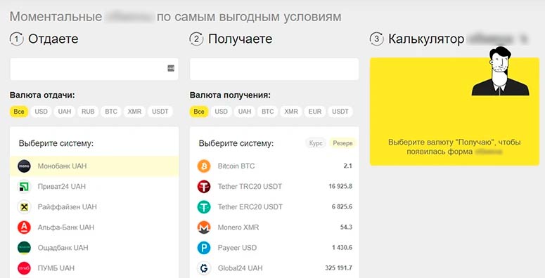 - Доступно более 24 направлений обмена, из которых 5 приходится на криптовалюты.