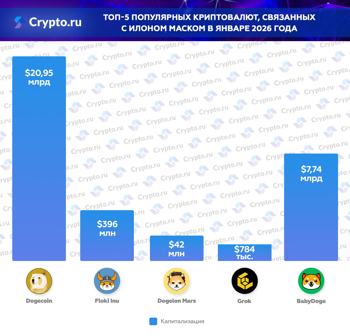 Илон Маск остается одной из самых влиятельных фигур в криптовалютном мире. Его слова в социальных сетях зачастую прямо отражаются на динамике той или иной цифровой монеты. В материале редакция Crypto.ru изучила 5 ключевых активов, которые непосредственно связаны с Илоном Маском.
