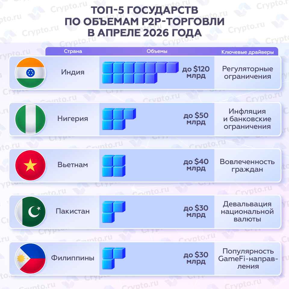 Топ-5 государств по объемам P2P-торговли в апреле 2026 года