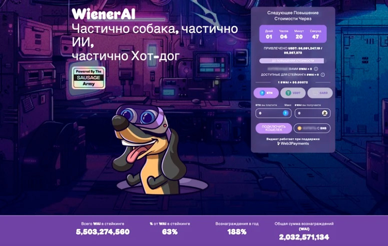 Несмотря на комичность истории создания нового мем-коина, его капитализация уже преодолела отметку $700 тысяч. И это просто картинка! Что ждет более серьезные проекты с очевидной полезностью и новейшими технологиями, как, например, WienerAI, на фоне такой дикой популярности мемных криптовалют?