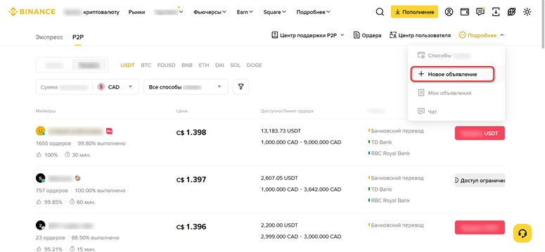 Начало торговли на Binance P2P