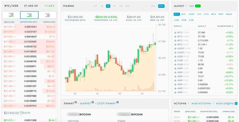 - В случае Маркет-ордера, транзакция будет исполнена по текущему рыночному курсу на момент отправки заявки.
