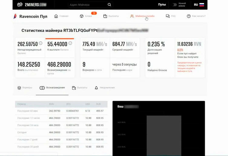 Мест для добычи Равенкоина много. Часть имеет географическое ограничение (Ravenminer доступен для региона US). Популярен пул 2Miners — хорошие условия с поддержкой русского языка.