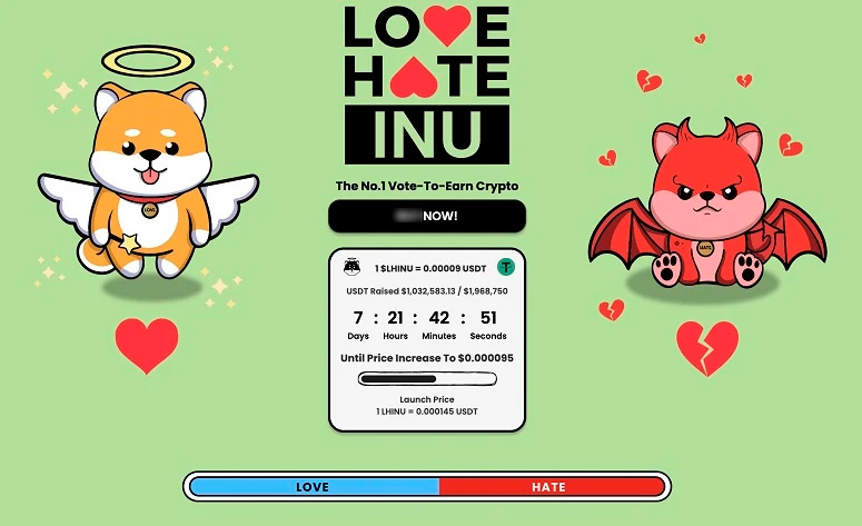 Молодой криптовалютный проект Love Hate Inu, созданный на базе новейшей технологии Vote-to-Earn («Голосуй, чтобы зарабатывать»), предоставляет клиентам возможность получать вознаграждения за прохождение различных опросов и голосований. Награда представлена в виде нативного токена платформы — LHINU.