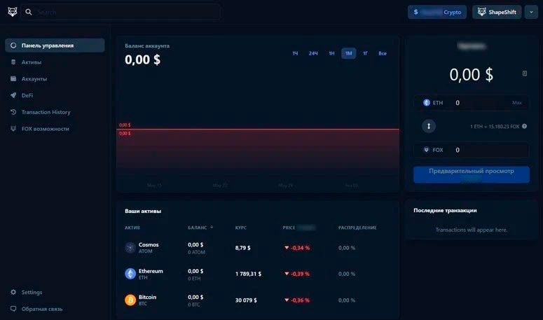 Интерфейс кошелька Шейпшифт