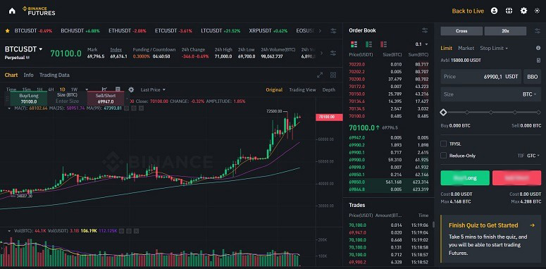 Это демо версия криптобиржи. Торговля идет на виртуальном сервере, полностью имитирующем реальный терминал Binance Futures.
