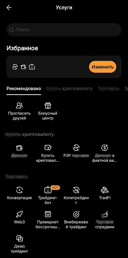 - Покупка криптовалюты. Сделки с фиатом возможны с помощью платежных провайдеров и P2P-сервиса.