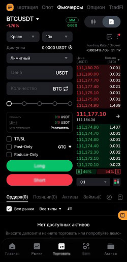 Мобильное приложение Bybit поддерживает все функции, доступные в веб-версии. Трейдеры могут открывать позиции и управлять ими, устанавливать разные типы ордеров (рыночные, лимитные, стоп-лосс, тейк-профит), использовать расширенные графики, индикаторы. Пользователям также доступны: